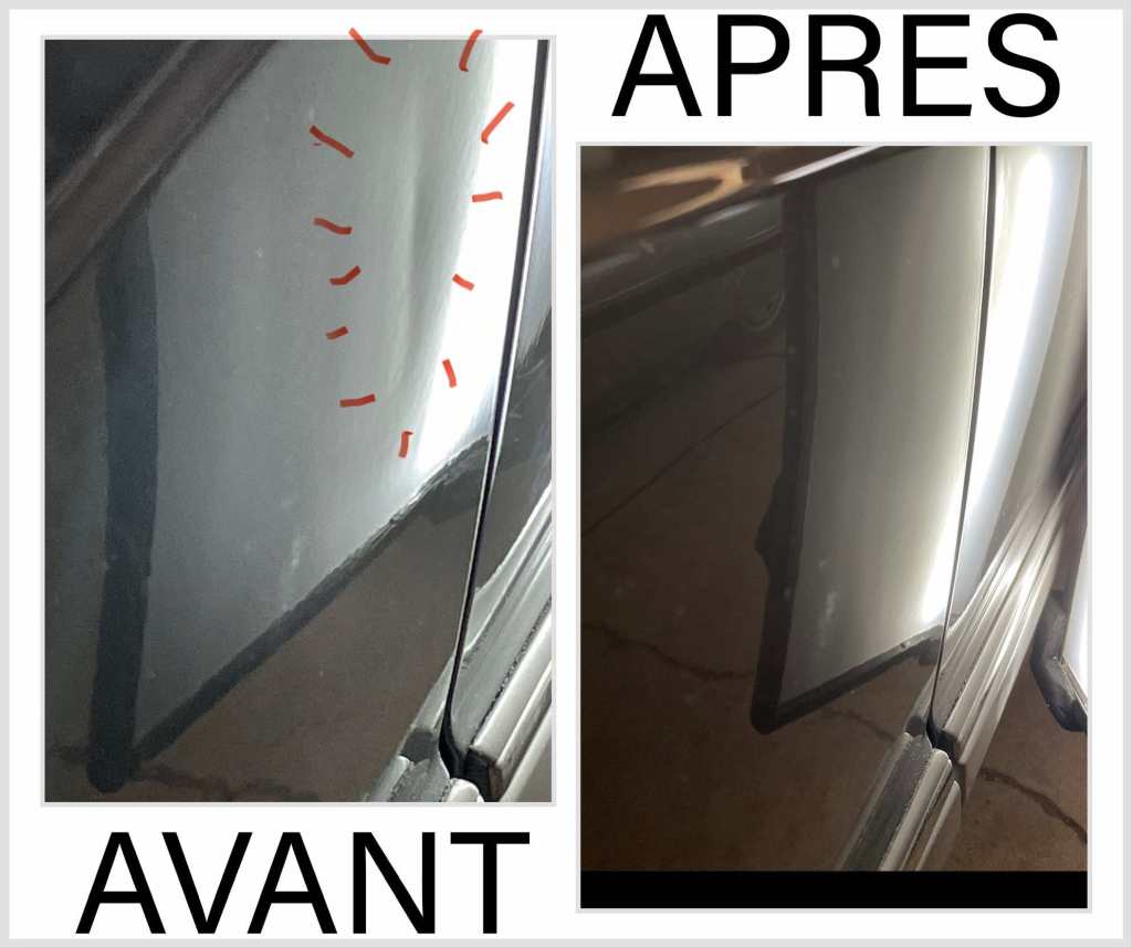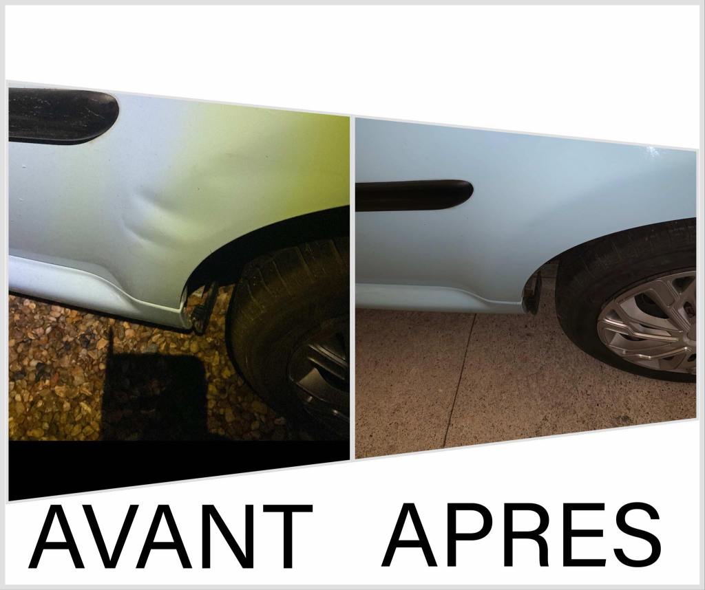 « Ma collègue m’avait donné un coup de portière lors de la tempête, cela avait fait plusieurs poks dont un sur l’arête de la portière qui a demandé plus de travail car plus compliqué d’accès. La réparation a été admirablement bien réalisée, en 24 heures et à un prix défiant toute concurrence . Parfait, je recommande. »